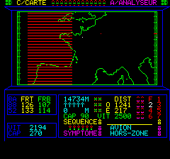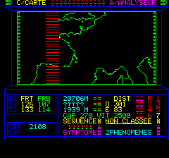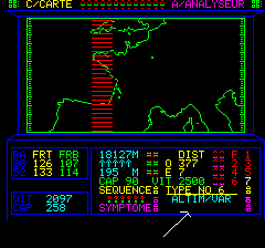 Il vous faudra de multiples approches pour découvrir le point faible, par dessus ou par dessous, c'est plutôt fatal d'y entrer frontalement. L'Analyseur: pressez 0, C, A Cet outil vous renseigne sur ses limites supérieures et inferieures, sa vitesse, son cap, et sa force. On voit qu'elle se déplace vers l'Est à 2500 km/h, la limite superieure semble fixe (ici 18127m). donnez lui le temps pour fournir son rapport