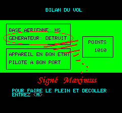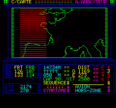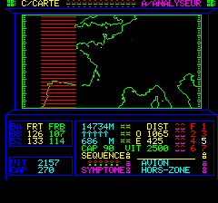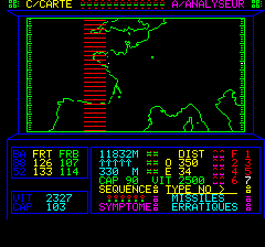 En fait vos instruments sont fous, la radio est brouillée et des missiles arrivent dont ne sait où ? bon sang ! mais comment détruire cette zone ? en fait comment détruire son générateur ? une fois atteint le coté droit, elle repart dans l'autre sens, cap au 270 !! |