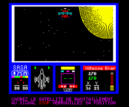 Coord. 36-19, i approached the planet, I put the spaceship in orbit by aligning my speed on the orbital velocity as soon as possible in order to not lose energy. I'm now in orbit and I discover the satellite to help, the goal is near. The operation of refuelling is rather delicate, but after some attempts the transfer of energy is carried out.